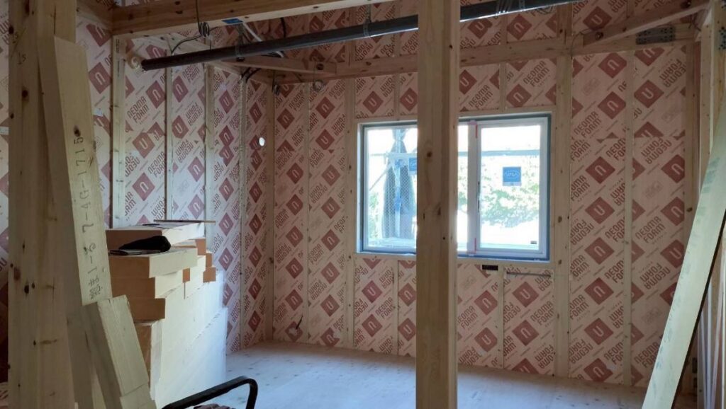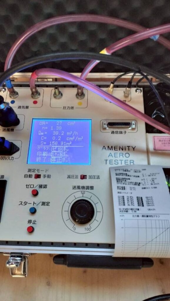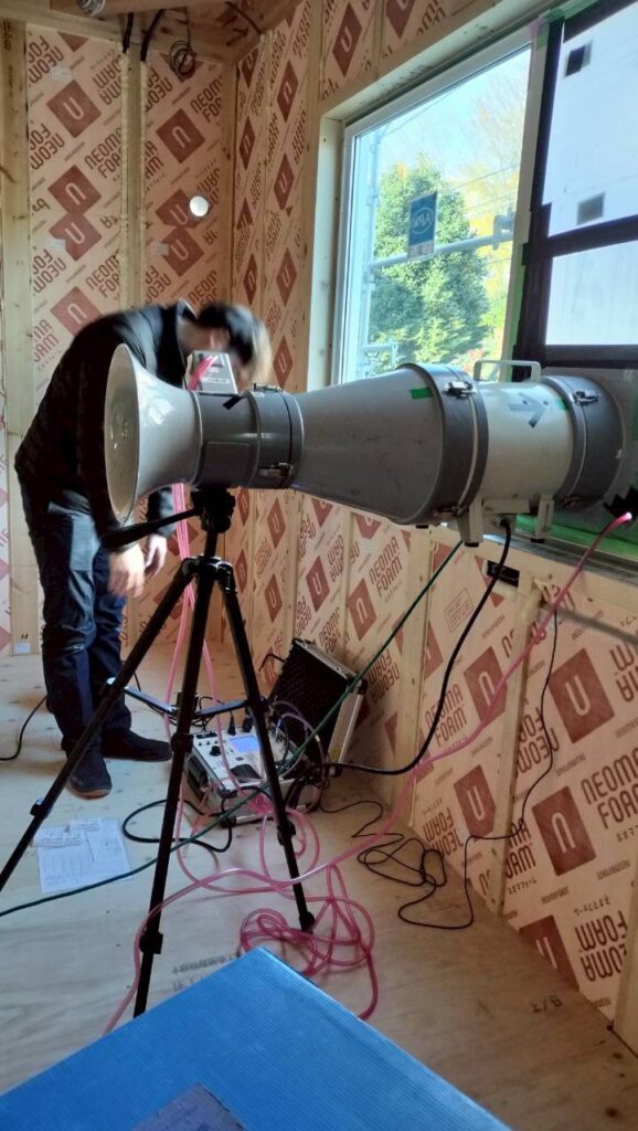 上棟後、断熱材の施工が終わると、家の隙間を測定します。