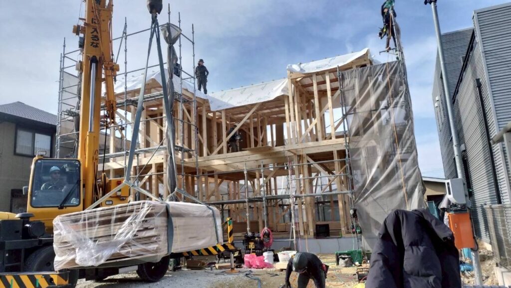 2月の晴れた日の上棟
