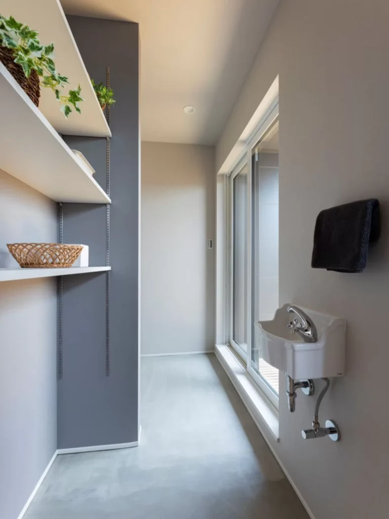 上り口には手洗いを設け、帰宅時の動線にも配慮しています。