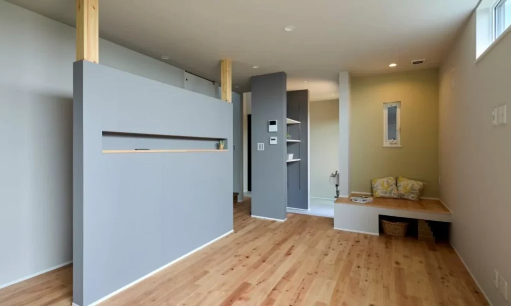 仕切り壁とヌックが心地よい、くつろぎのリビング