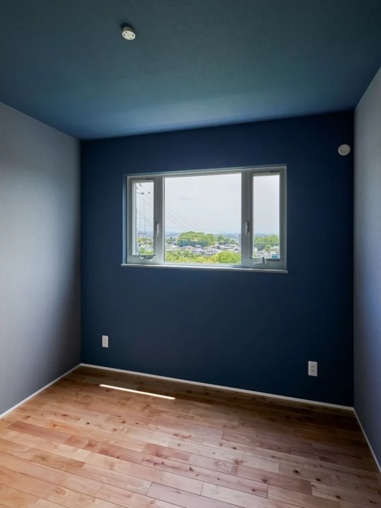 寝室のクロスには、やさしく落ち着いた色合いを採用。