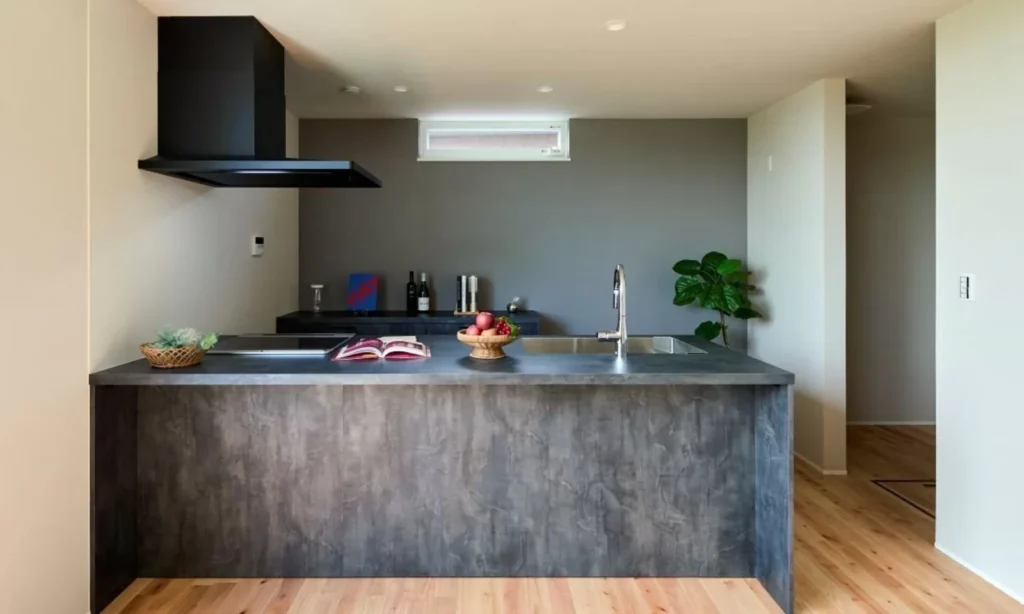お部屋全体のトーンに合わせて、キッチンには上品なグレーを採用。