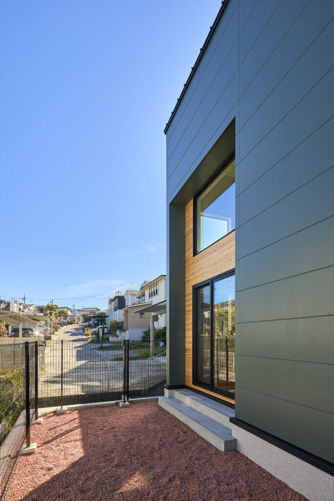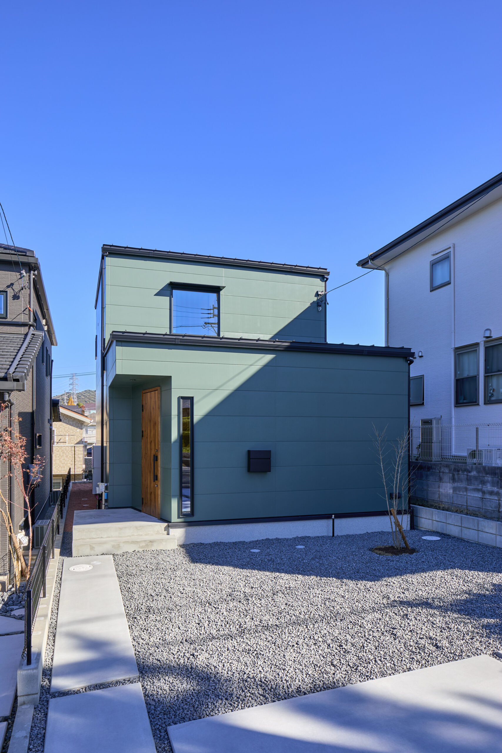 明るさとデザイン性を両立した、グリーン外壁の住まい