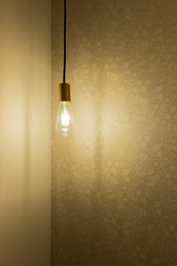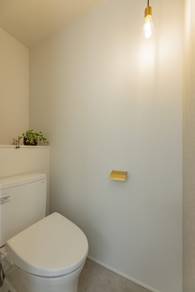 シンプルなデザインの中に、お気に入りの照明やトイレアクセサリーが映える洗練された空間。