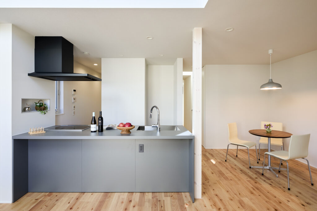 廊下から見えないレイアウトで、生活感を抑えたスマートな空間に仕上げています。