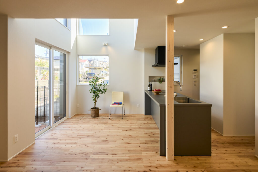 自然光が生み出す陰影が美しく、時間帯によって異なる表情を楽しめるLDKです。